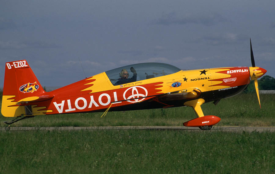 Extra 300 S Da steht doch was kopf? Frank Verstegh nimmt nach einer spektakulären Vorführung den verdienten Beifall des Publikums entgegen. |