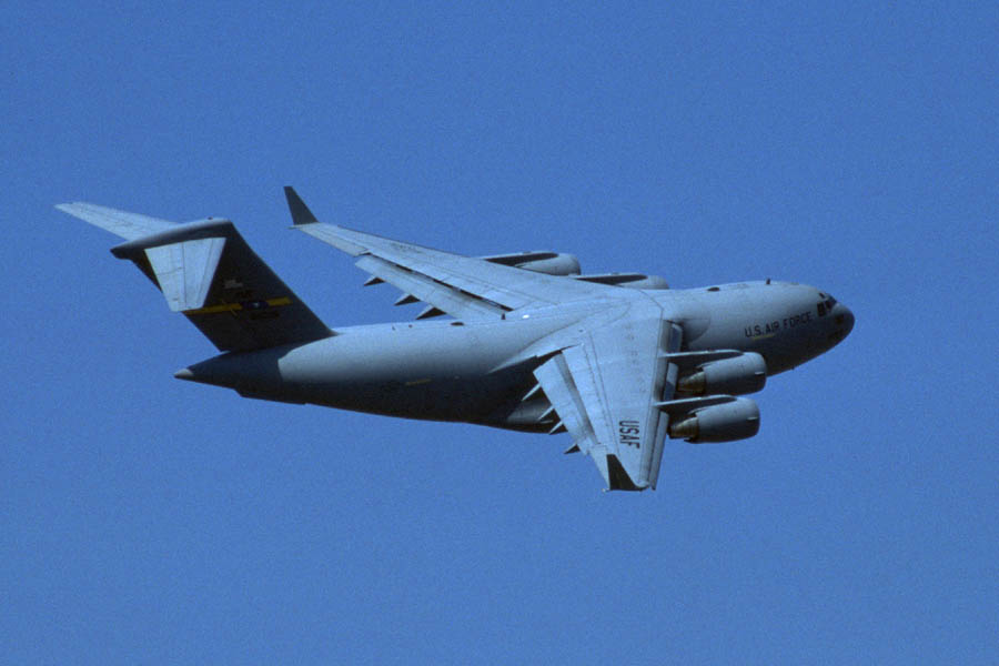 Boeing C-17 Globemaster III Ein wahrhaft gewaltiger Transporter, der erstaunlich agil fliegen kann. (ILA 2000) |