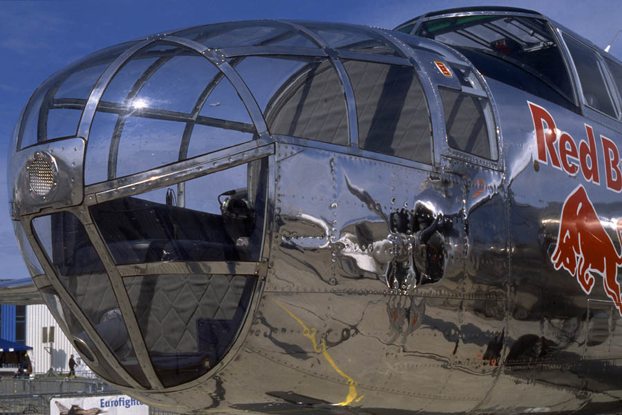 Hauptmotiv sind natürlich die Flugzeuge, am Boden und insbesondere in der Luft. Dort sind sie zwar gut zu sehen, aber für halbwegs konventionell ausgestattete Fotografen eigentlich immer zu weit weg. Anfänger (und von der Begeisterung/Hoffnung mitgerissene Fortgeschrittene wie ich...) merken das spätestens dann, wenn sie den Inhalt ihrer Fotos erklären müssen. "Der Fliegendreck da ist eine Mustang, die ist gaaanz toll geflogen, und erst dieser Sound!"