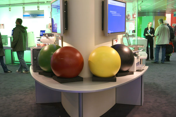 Der Bildstabilisator war in der naturgemäß "finsteren" Messehalle Gold wert. Er funktioniert vermutlich auch beim Mitziehen ganz hervorragend - man kann das aus dem Verhalten des Indikators im Sucher ableiten: Beim "Beschleunigen" schlägt dieser kurz aus, während der (möglichst gleichmäßen) Schwenkbewegung zeigt er nur geringe Aktivität an, beim Abbremsen kommt ein erneuter Ausschlag. Der Ablauf ist dabei unabhängig von der Orientierung der Kamera immer gleich, also im Quer- und Hochformat und sogar diagonal. Und das alles ohne irgendwelche Modi umschalten zu müssen, ziemlich beeindruckend.